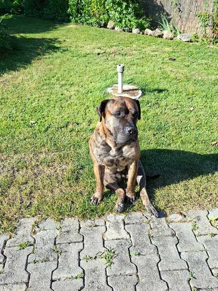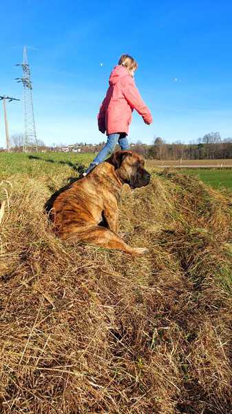Unsere liebe Boerboel-Hündin Alma (geb. am 31.08.2019) sucht aus familiären Gründen ein neues Zuhause. Alma ist ein freundliches brindle Mädchen, das mit Kindern, Katzen und Hühnern aufgewachsen ist.